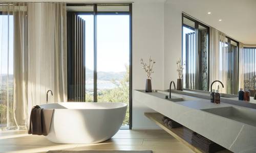 Inredningsdesignen med sina organiska former i kombination med naturliga material, ljus och rymd skapar lugn och komfort. Du kommer att märka att alla ytbehandlingar, material och installationer är noggrant utvalda för att uppfylla högsta internationella standard. Med kök och vitvaror från Cocinart, Gaggenau, Bora och Vola är det tydligt att inget har lämnats åt slumpen.