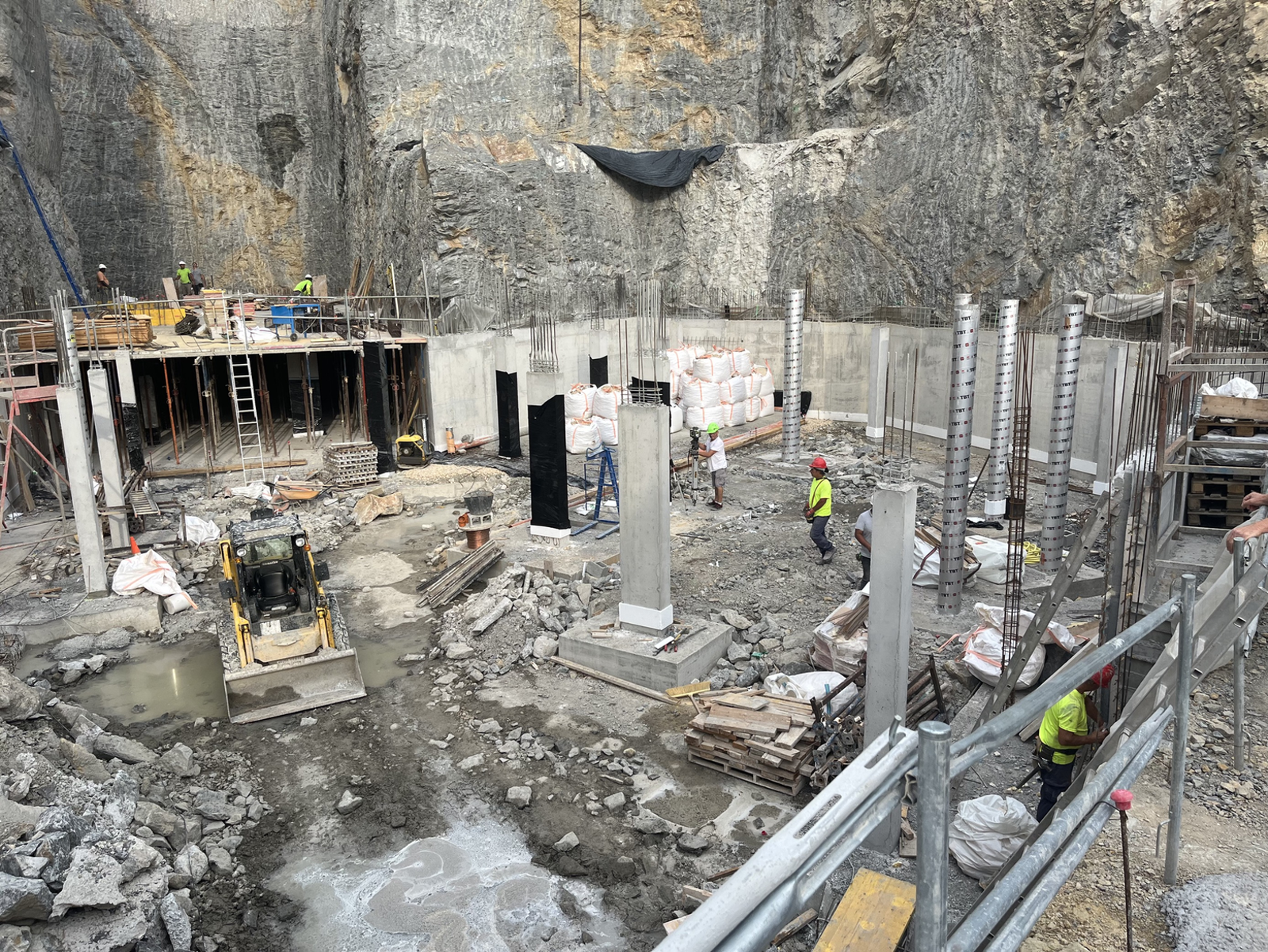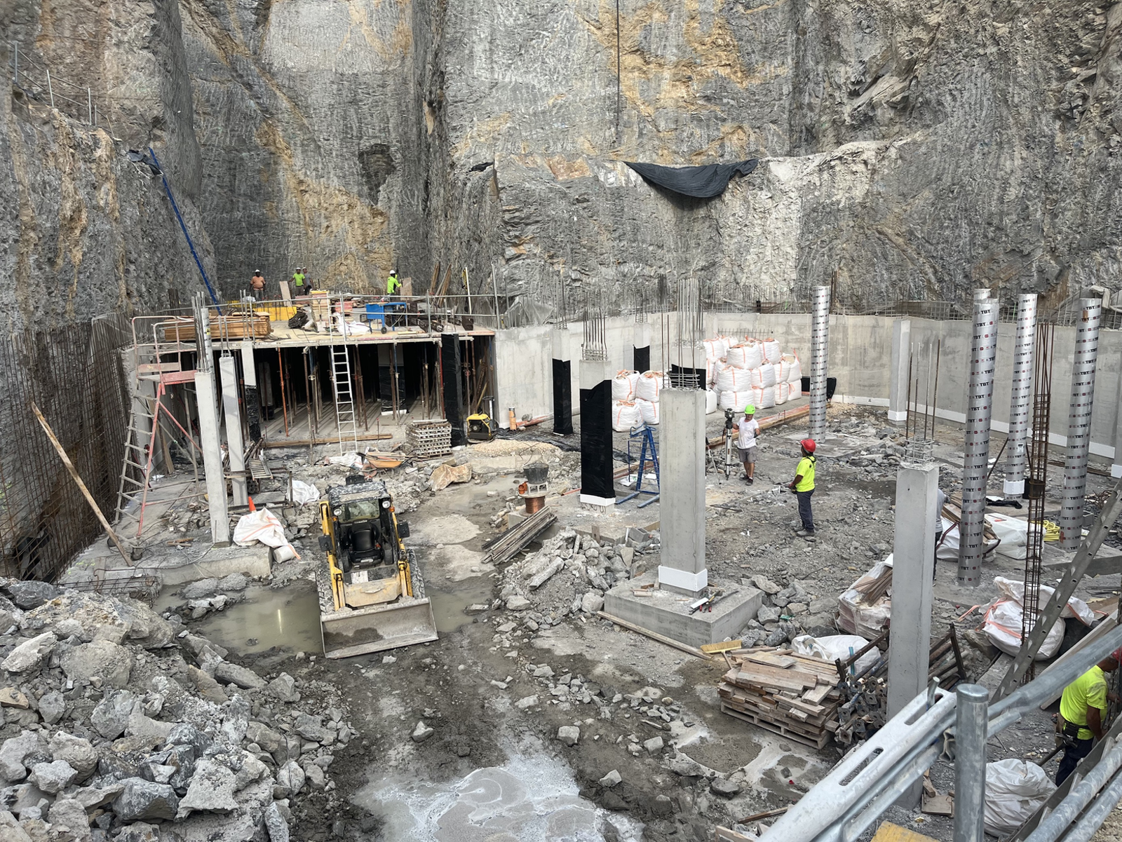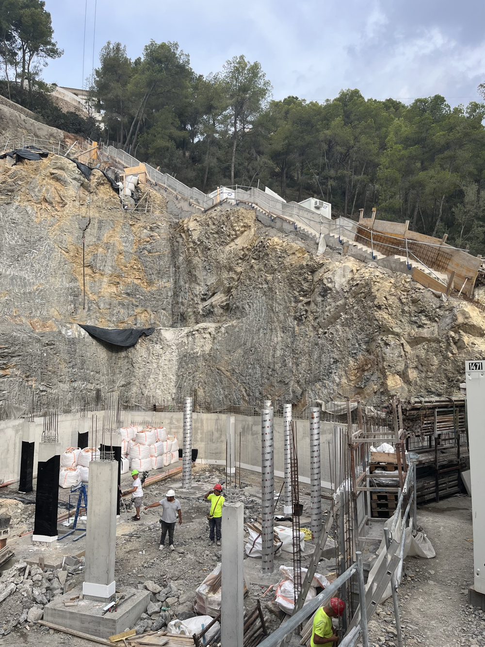 Bygget är i full gång, och i somras avslutade vi en lång och komplicerad utgrävning av berget där vår byggnad ska ligga. Detta har varit den mest kritiska fasen och har gått över all förväntan. Trots närmare 20 000 kubikmeter sten har det genomförts framgångsrikt, där vi hållit både budget och tidsplan. Nu är vi äntligen igång med själva strukturarbetet. Vi börjar bygga garage för att sedan jobba oss uppåt i byggnaden. Förra veckan gjordes första grundgjutningen för garaget och vi bör vara klara med Hill100 i januari 2024. Därefter kan vi vänta oss en ny våning var 3:e till 4:e vecka. När en våning är klar påbörjas genast installationer i denna våning medan ovanstående våning byggs. På så sätt jobbar vi oss uppåt för en färdig produkt någon gång sen höst 2024.