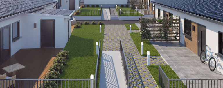 Lägenheternas exteriöra utseende har reviderats med anledning av tillgänglighetskrav och nivåskillnader.